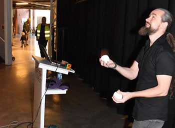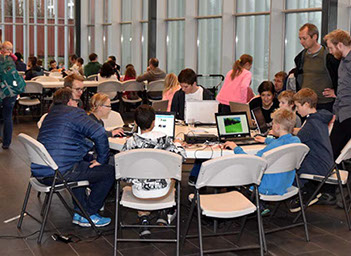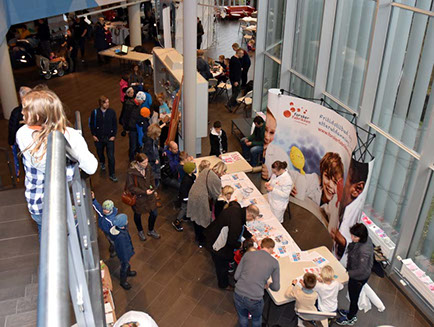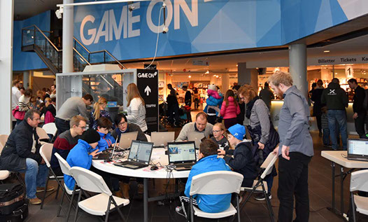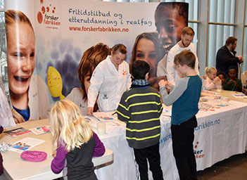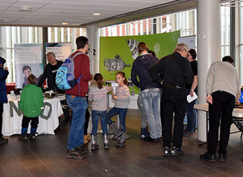 TEKNA har stand i foajeen. Koding for Kids, robotbane og radioamatører.