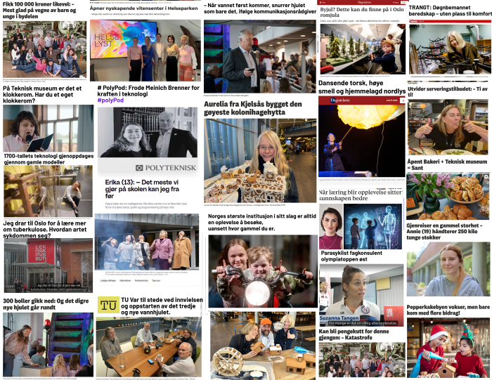 I løpet av året ble Teknisk museum, Oslo vitensenter og Nasjonalt medisinsk museum omtalt i til sammen 306 redaksjonelle artikler. Av disse gjaldt 287. Teknisk Museum, 12 Oslo vitensenter og syv Nasjonalt medisinsk museum.