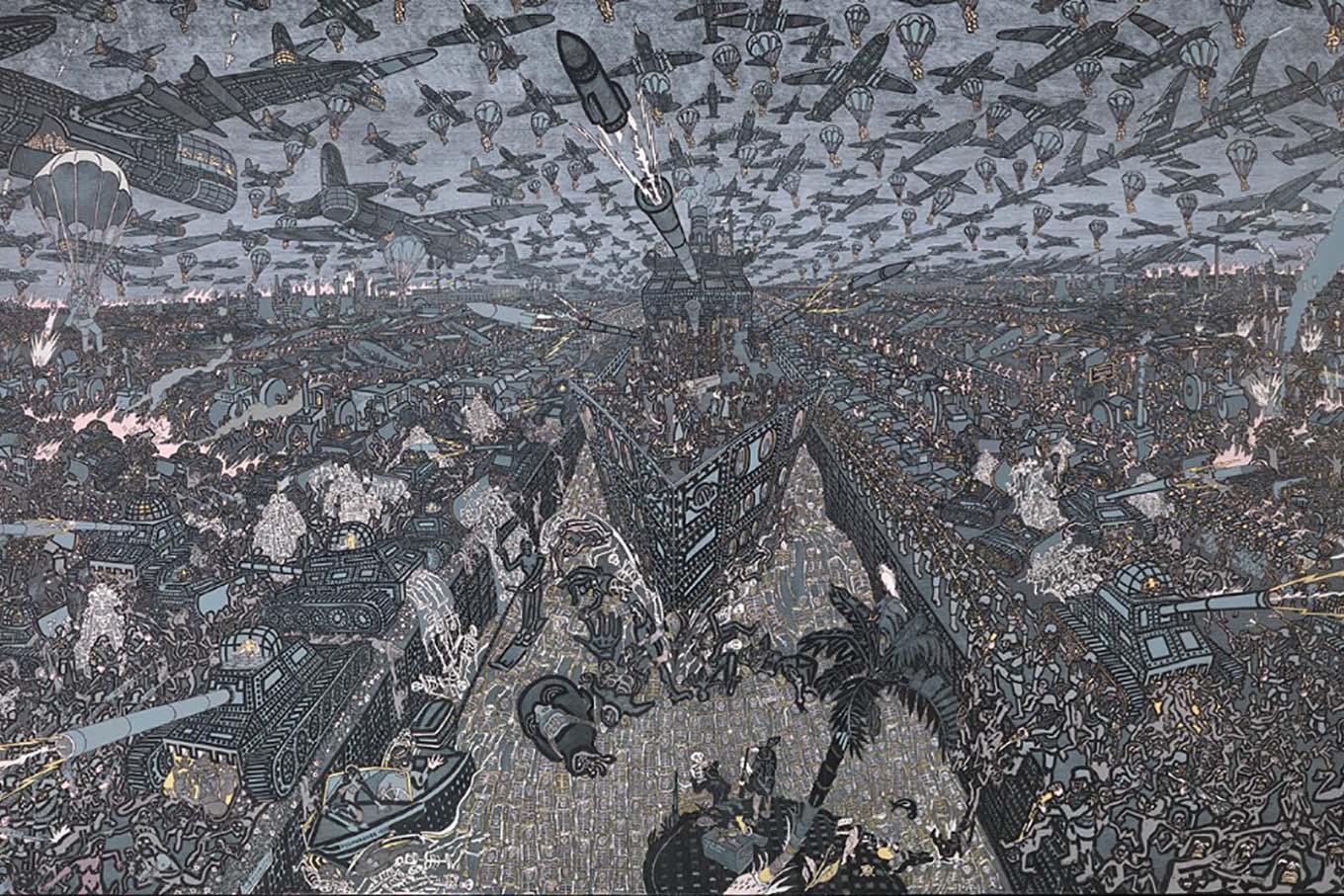 It may not be easy to discover which works are from the National Museum's collections. We encourage you to go on an art hunt. Can you find the "sand" in the machinery?