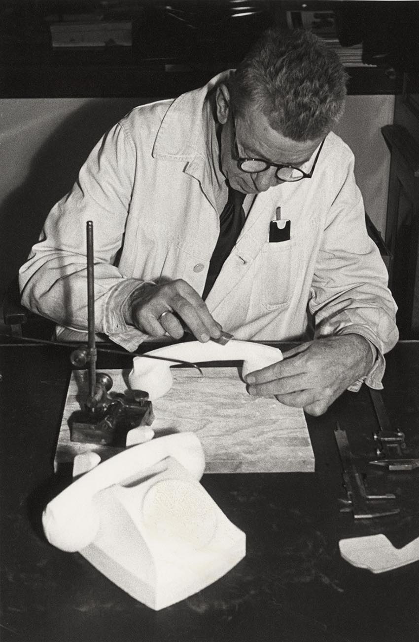 Jean Heiberg was given the task of giving shape to the appliance box. The artist's first plaster model turned out to be too demanding to cast in Bakelite. He therefore designed a new and simpler edition. In this way, the phone got its final shape with smooth planes and sharp edges.