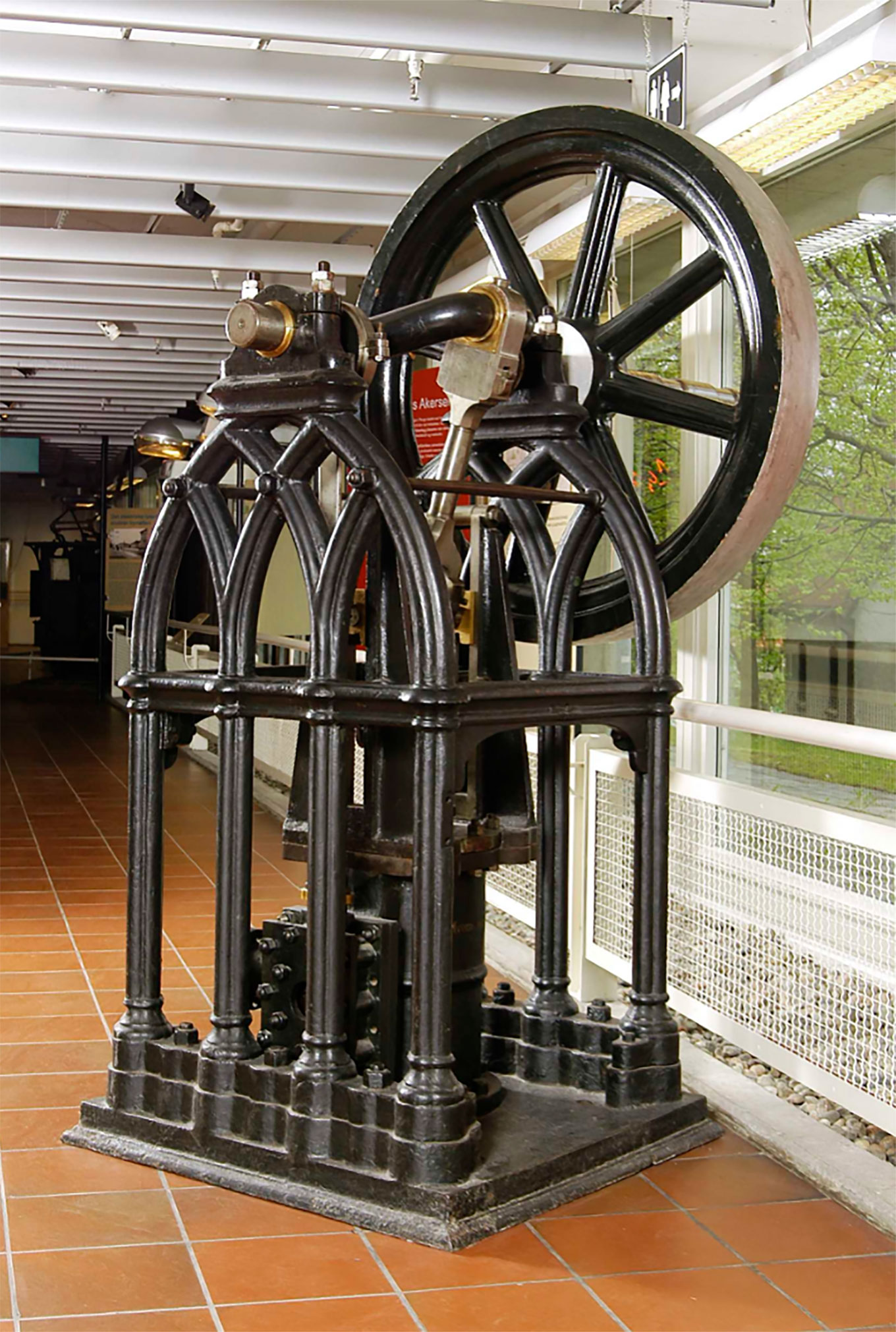 Since The Norwegian Museum of Science and Technology opened its permanent exhibitions in the Viking shiphouse on Bygdøy on 5 April 1932, the Gothic steam engine has had its place in the museum's exhibitions.