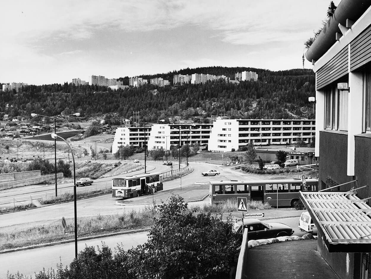 After World War II, development continued with shanty towns. The Oslo municipality and the tram company extended the metro from the city center to Lambertseter, towards Østmarka and Skullerud, and on both sides of the Groruddalen to Romsås and Ellingsrud.