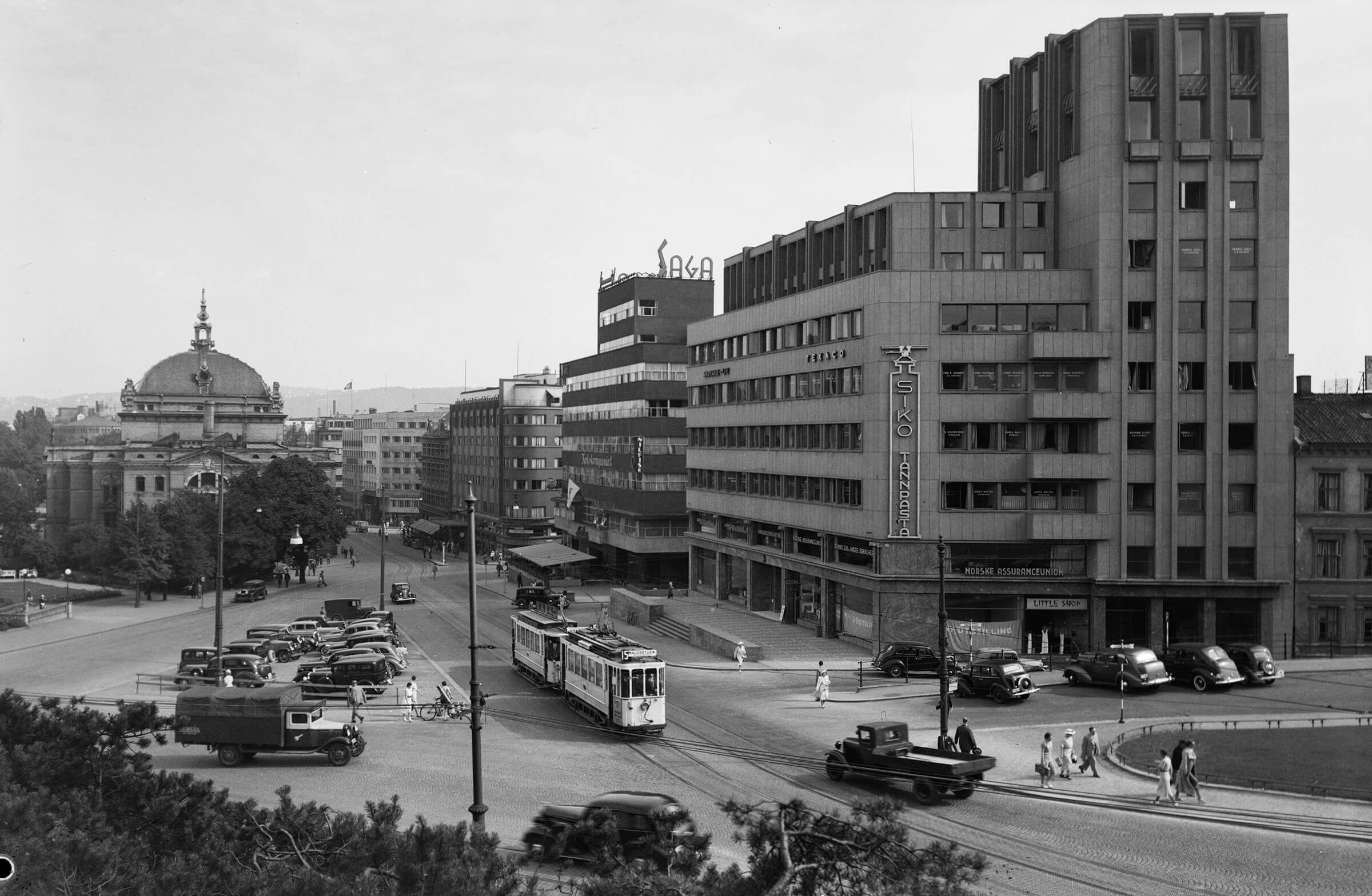 Tram by the National Theater on its way up Drammensveien, 1940.
