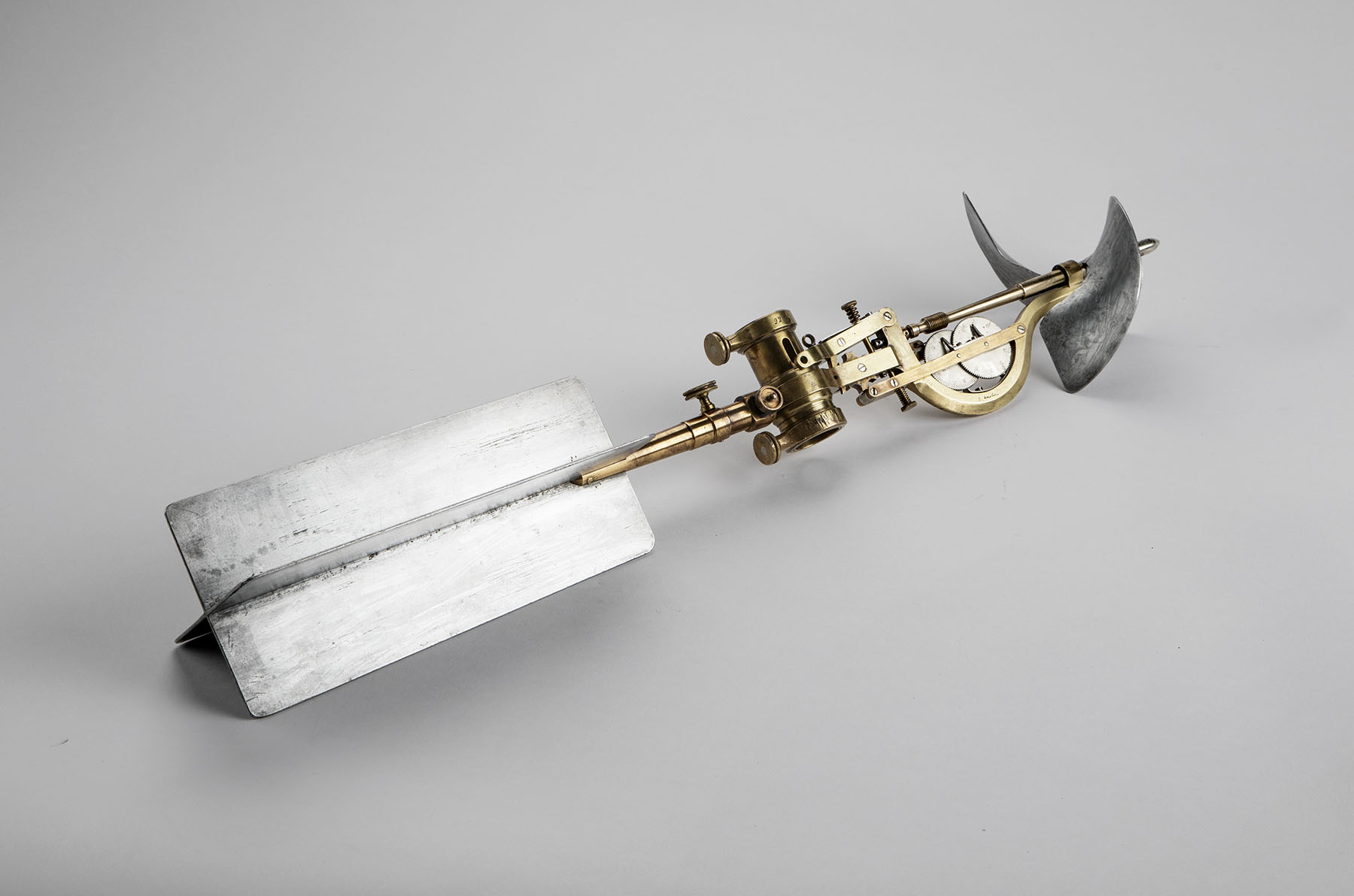 This hydrological instrument from the 1880s was called a "flügel" and measured speed, water quantity and currents in the watercourse. It was used by the Kanalvesenet, which was responsible for the utilization of Norwegian waterways before the "agency" became part of the newly formed NVE in 1921.