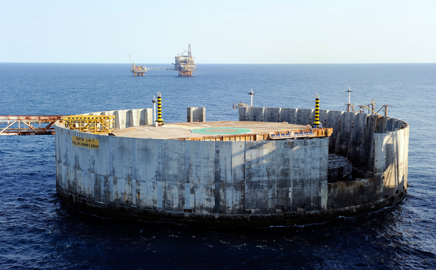 Cast in concrete, with a height of over 70 metres, the Ekofisk tank could store up to 1,000,000 barrels of oil. It was built as a storage site for oil from the Ekofisk field, but was quickly replaced by a pipeline to Teesside in England. The tank is no longer in use.