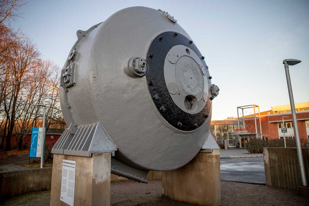 The museum has cleaned and repainted the arc furnace from Norsk Hydro, which is on display in the car park in front of the museum building. The arc furnace (NTM 10116) represents an important era in Norwegian industrial history. Hydro started fertilizer production in 1905, and the oven was developed by Kristian Birkeland and Sam Eyde, who laid the foundations for this industrial adventure. These ovens were used at the factory in Rjukan from 1915. The oven was taken out of operation in 1940. Only two ovens of this type have been preserved.