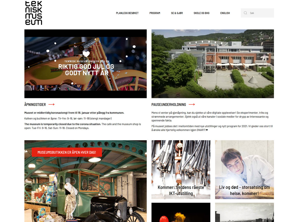 The websites have been changed in line with the new needs and the role websites can and should have in society both inside and outside the museum's doors – regardless of whether they are open or closed to the physical public. In this way, The Norwegian Museum of Science and Technology can also better fulfill its national responsibility for its core areas.
