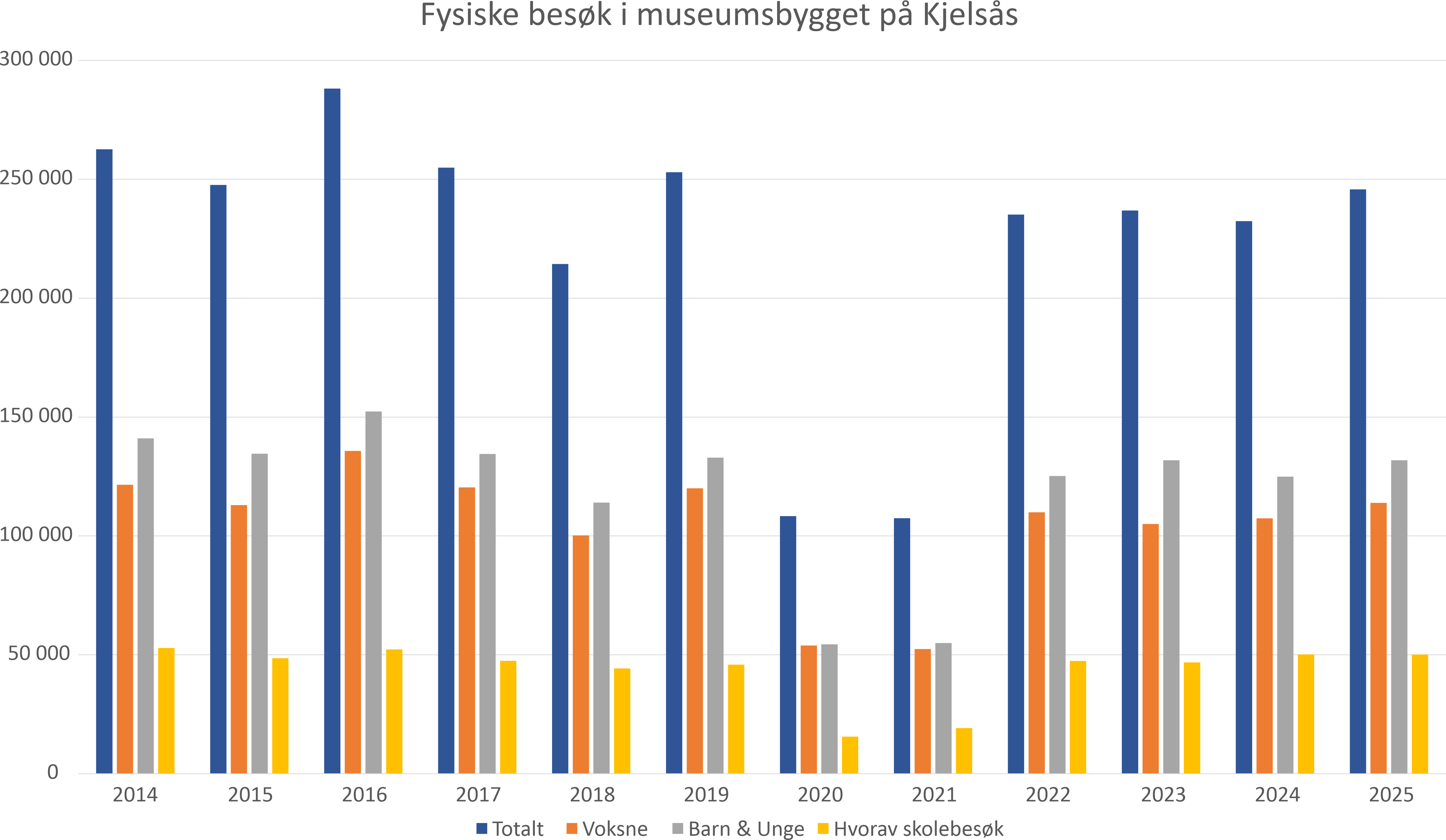 Vi hadde totalt 245.753 besøkende på museet i 2025, og er dermed godt på vei mot å nå målet om å overgå besøkstallene fra 2019. Skolebesøkene økte gjennom året, og satsingen på nye utstillinger samt fornyelsen av eksisterende utstillinger bidro til å tiltrekke nye besøkende og sikre høy andel gjenbesøk.